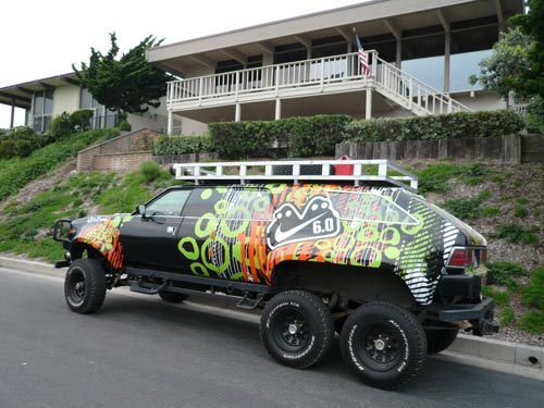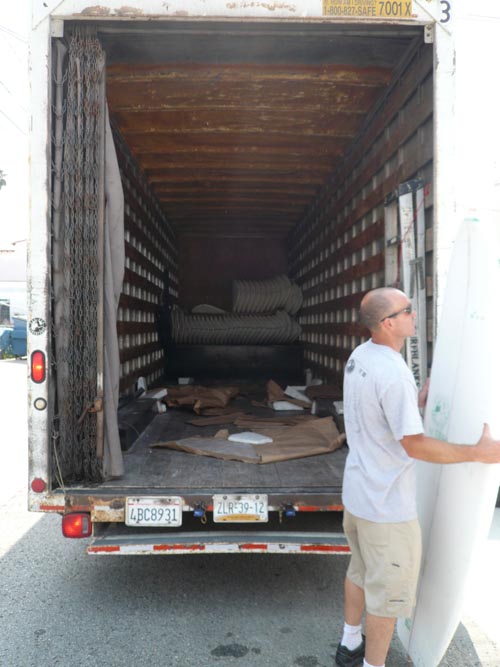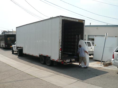 サーフブランクス社のトラックがファクトリー前に横付けされて、