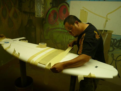 ■ 今回メイヘムがシェイプした、ファイバーフレックスボードは、6月1日から始動開始した、ファイバーフレックス ジャパン社のエポキシ樹脂の取扱いエキスパートがグラスラミネートを担当するのでオーストラリア製よりもはるかに綺麗にグラスジョブが施行されます。ボードをコンペタイプで軽くしたりとか、大切なプレミアボードなので丈夫にしたいとか細かいオーダーにも対応可能です。