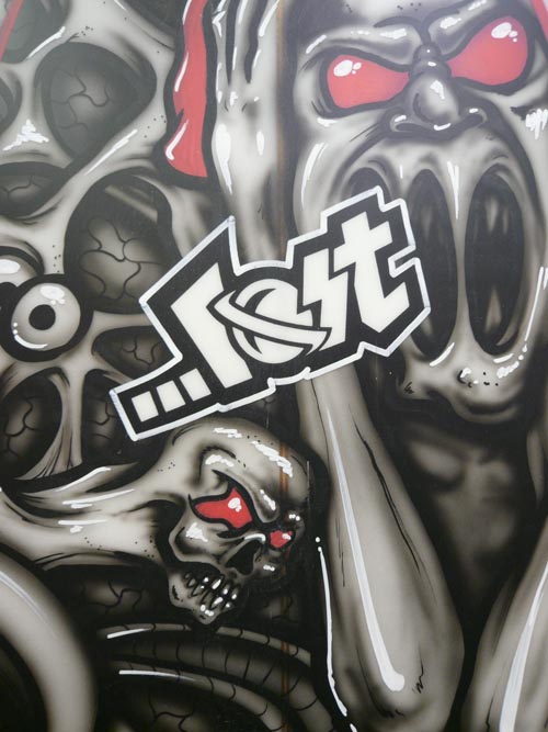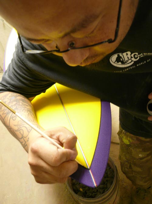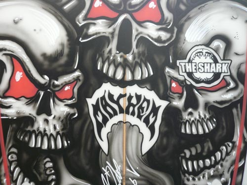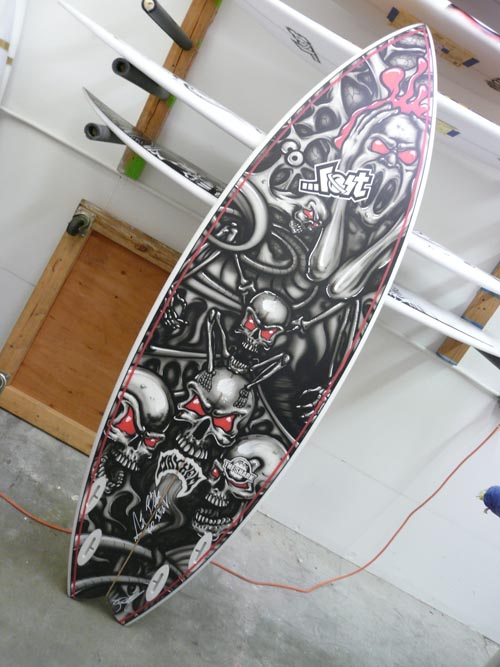 エアーブラシアーティストのテリーさんは、マイケルホーさんのボードをペイントしていました。