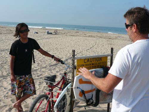 朝はメイヘムと自転車に乗って,ローワーにサーフィン。